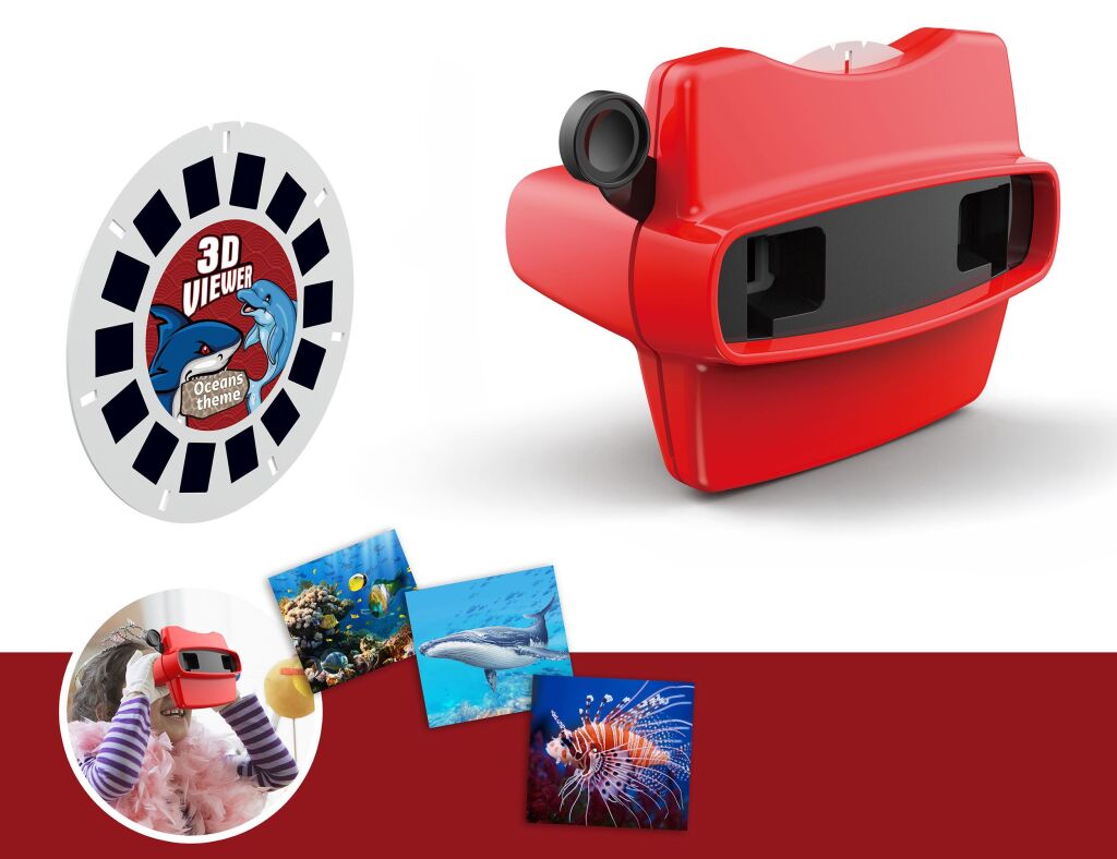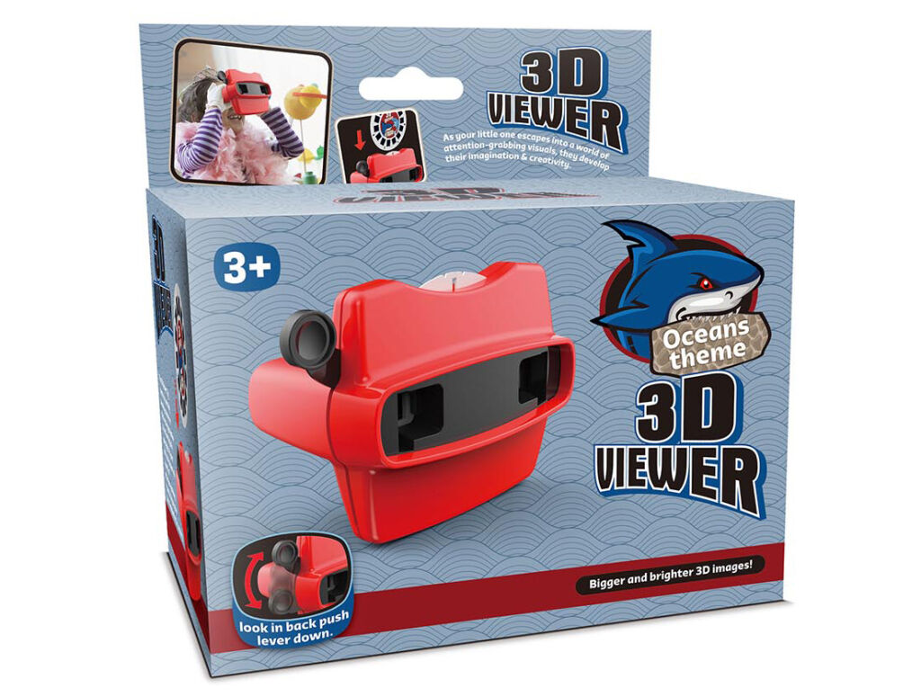 3D brýle moře. Rozměry 13,5x8x9,6 cm. Obsahuje 14 3D obrázků. Přepínání páčkou na straně.