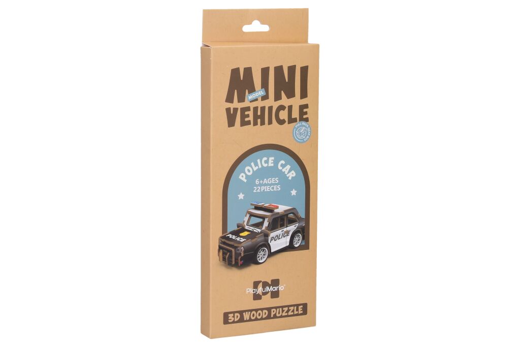 3D puzzle dřevěné - Policejní auto. Rozměry 13x6,2x5,7 cm. 22 dílků. Na zpětné natažení.