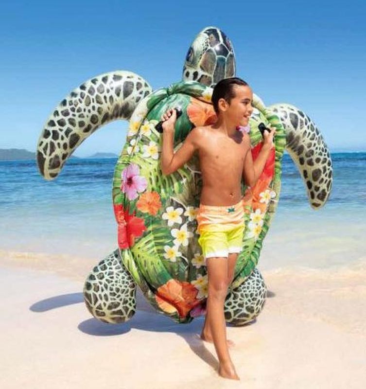 Velká nafukovací želva se postará o pořádnou zábavu u vody, na dovolené i koupališti! Díky tvaru a stabilnímu rozpoložení si můžeš dopřát relax a nechat se unášet vlnami! 2 nafukovací komory 2 pevná držadla bez obsahu ftalátů obsahuje záplatu pro rychlé zalepení Rozměry: 191 x 170 cm Doporučený věk: od 3 let Nafukovací hračky a potřeby Intex splňují nejpřísnější bezpečnostní normy na zpracování a použité materiály.Parametry produktu