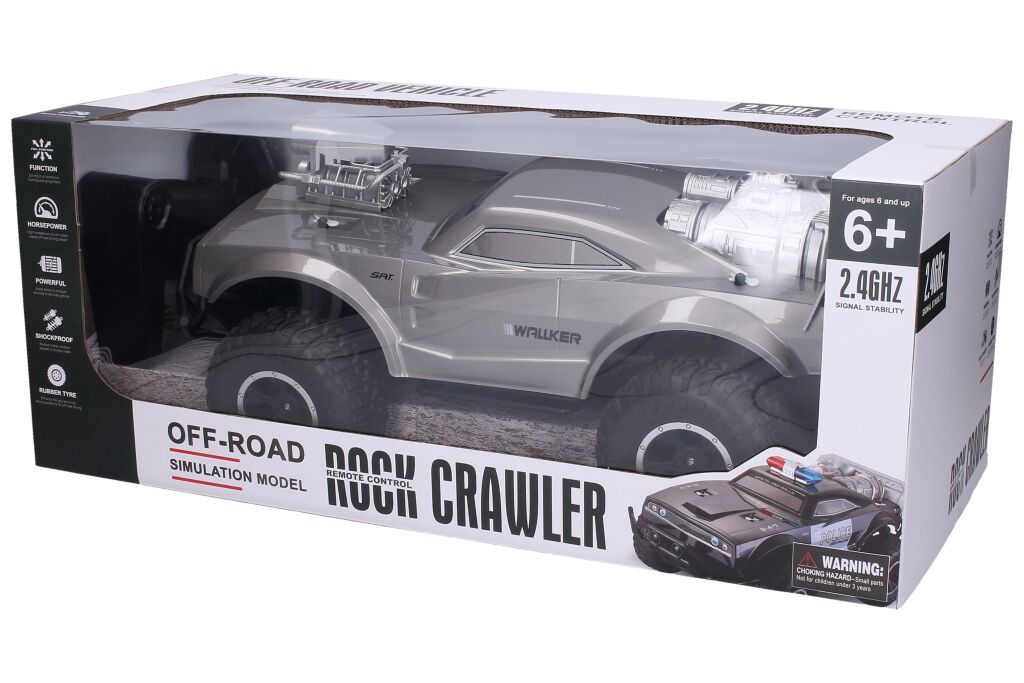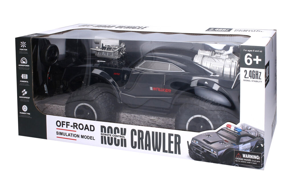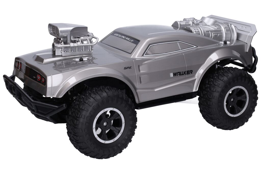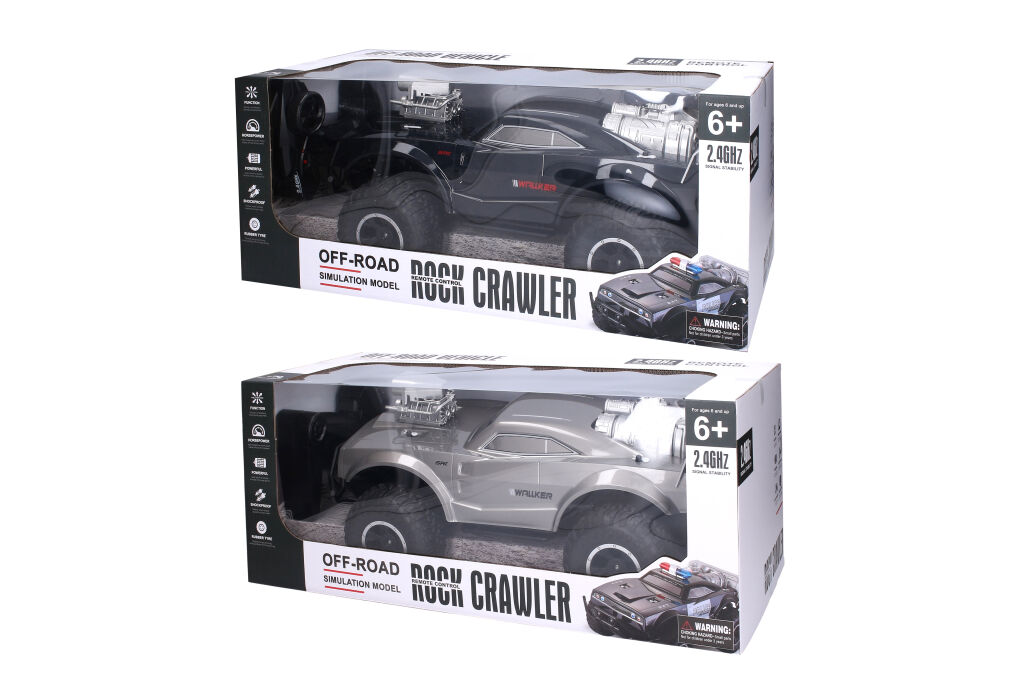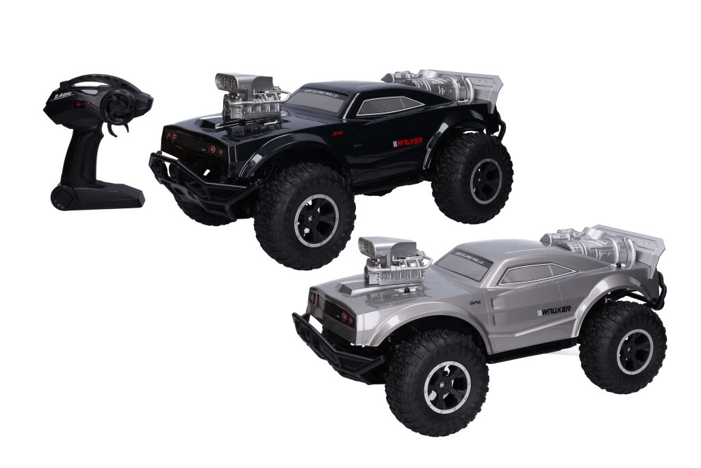 Auto RC na dálkové ovládání. Rozměry 48x24x18 cm. Frekvence 2.4 GHz. Pistolový ovladač. Bateriový pack 7.4V 500mAh pro auto součástí, 2xAA pro ovladač není součástí. Přepínač ON/OFF na spodní straně auta a na ovladači. USB kabel součástí. 2 varianty - černá, šedá.Parametry produktu