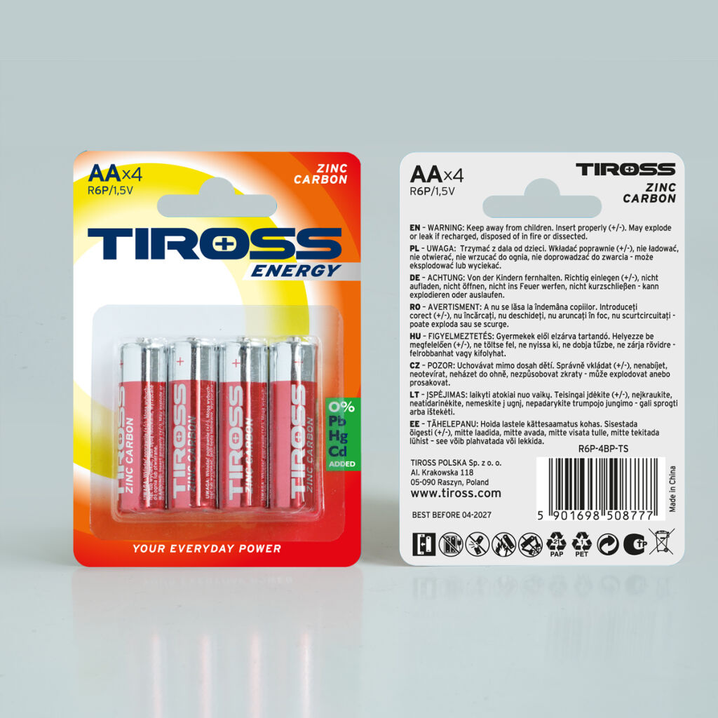 Baterie AA (R6P, 1.5V). Zinko-uhlíkový článek. Balení obsahuje 4 ks.Parametry produktu
