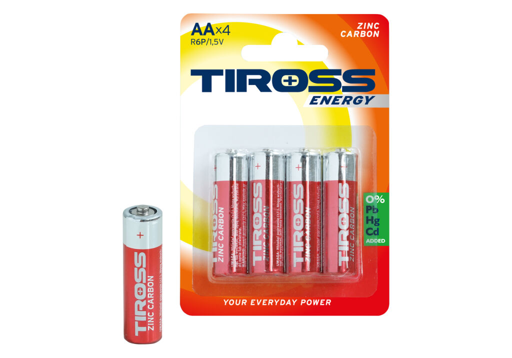 Baterie AA (R6P, 1.5V). Zinko-uhlíkový článek. Balení obsahuje 4 ks.