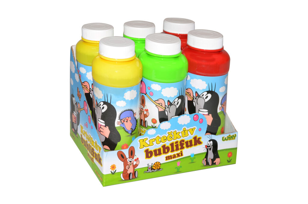 Bublifuk maxi krtek 240 ml. 6 ks display box. 3 varianty - zelená, žlutá, červená.Parametry produktu