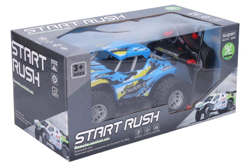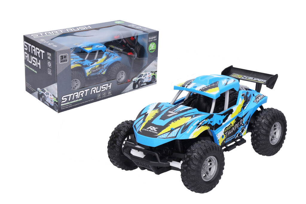 Bugina RC na dálkové ovládání. Velikost 23 cm. Bateriový pack 3.7V do buginy součástí, 2xAA do ovladače nejsou součástí. USB kabel součástí. Přepínač ON/OFF na spodní straně auta.