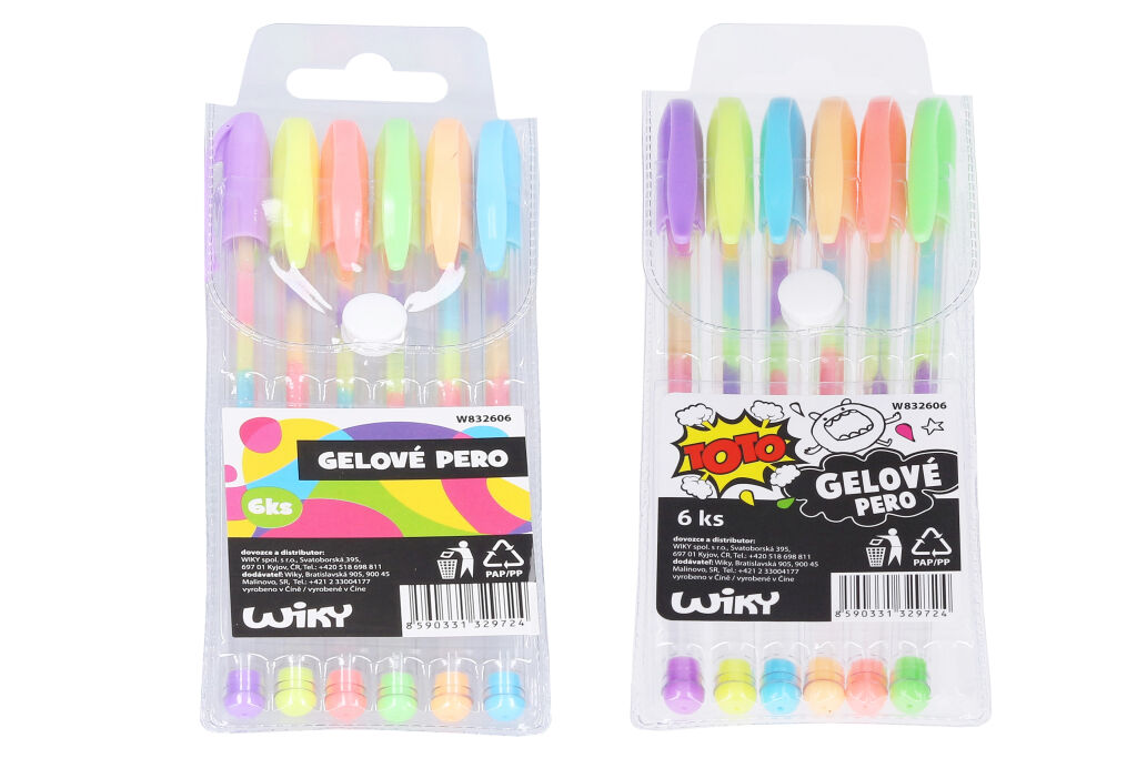 Sada gelových per. Průhledné kulaté tělo, koncovka a uzávěr v barvě náplně. Výrazně sytá reflexní stopa. Balení 6 ksParametry produktu