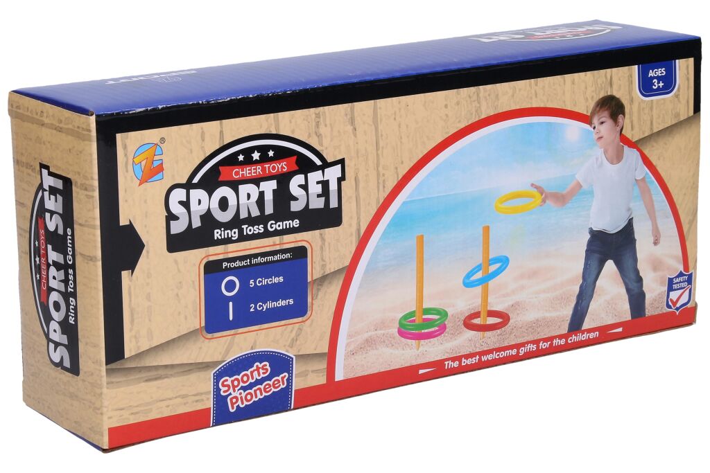Házení kroužků set. Obsah balení - 2 x kolík (30 cm), 5 x kroužek (13 cm).