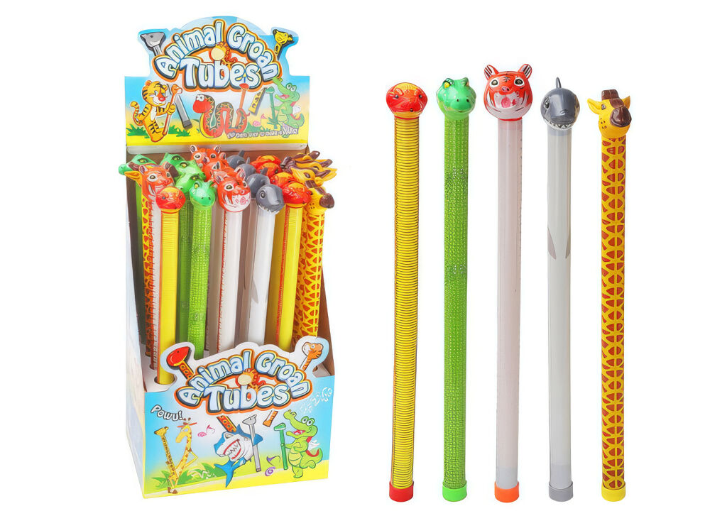 Hůlka se zvukem zvířátko. Rozměry 2,4x5,5x42 cm. Display box - 24 ks. 5 variant - krokodýl, tygr, žralok, žirafa, had.