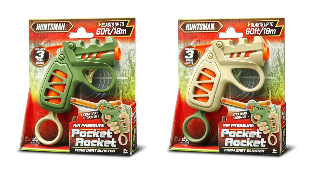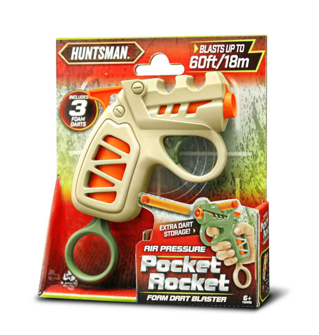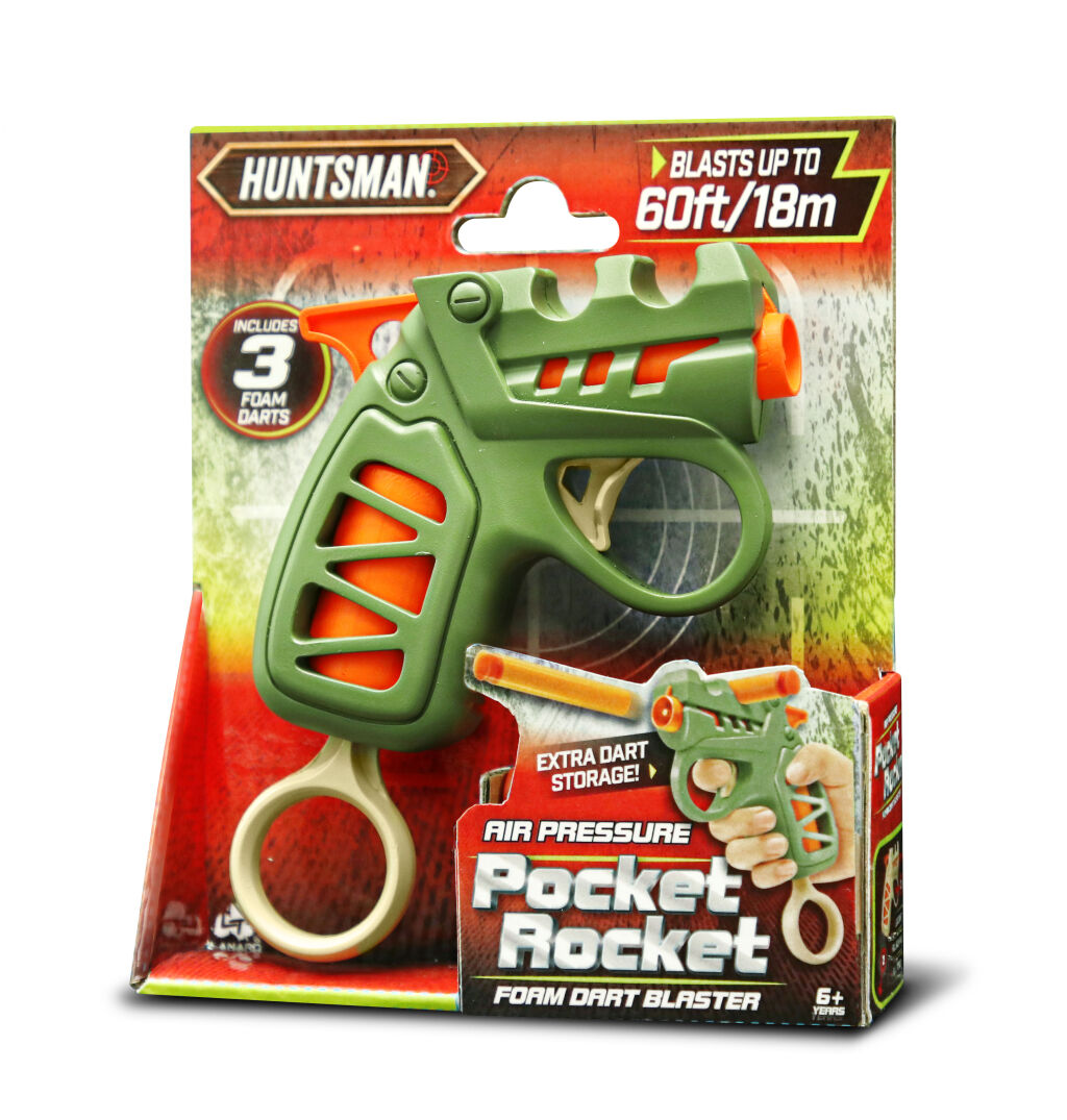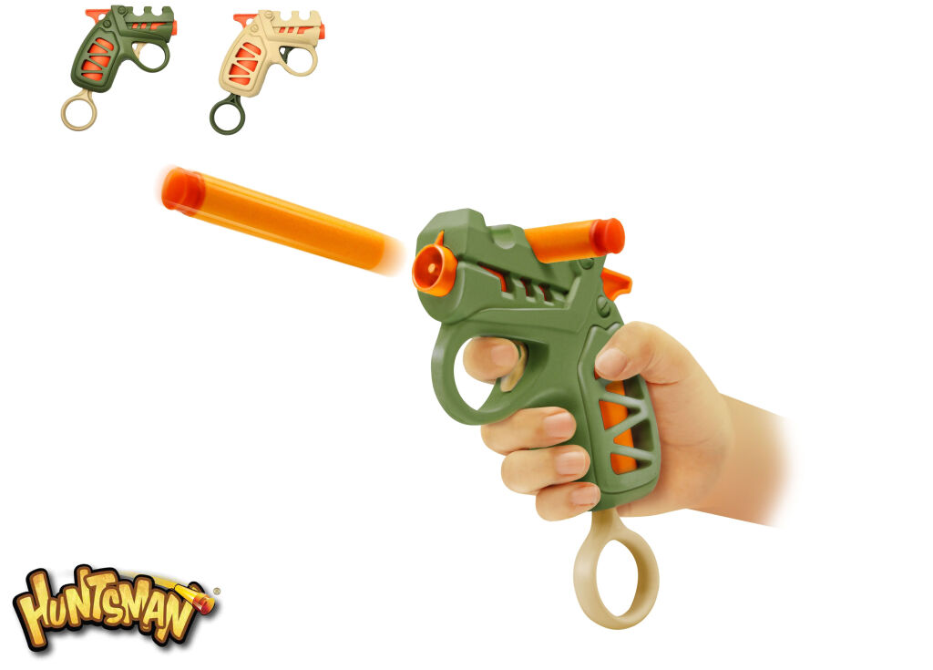 Huntsman Pistole kapesní natahovací. Velikost 13 cm. Dostřel až 18m. Střela se vkládá do hlavně zbraně, nabití pistole se provádí natažením prstýnku ve spodní části, spouští se vystřelí. Obsah balení - pistole, 3 pěnové střely. 2 varianty - zelená, hnědá.Parametry produktu
