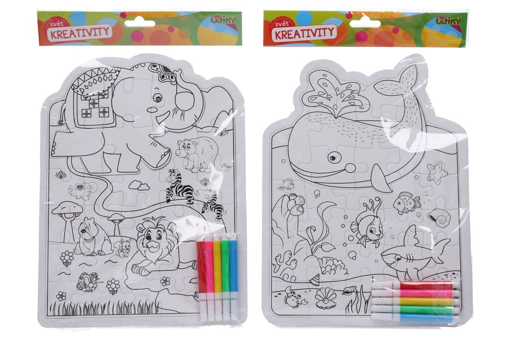 Kreativní set o velikosti 21x28 cm. Obsahuje puzzle které se dají vykreslovat + 5 kusů fix. 4 různé motivy.Parametry produktu