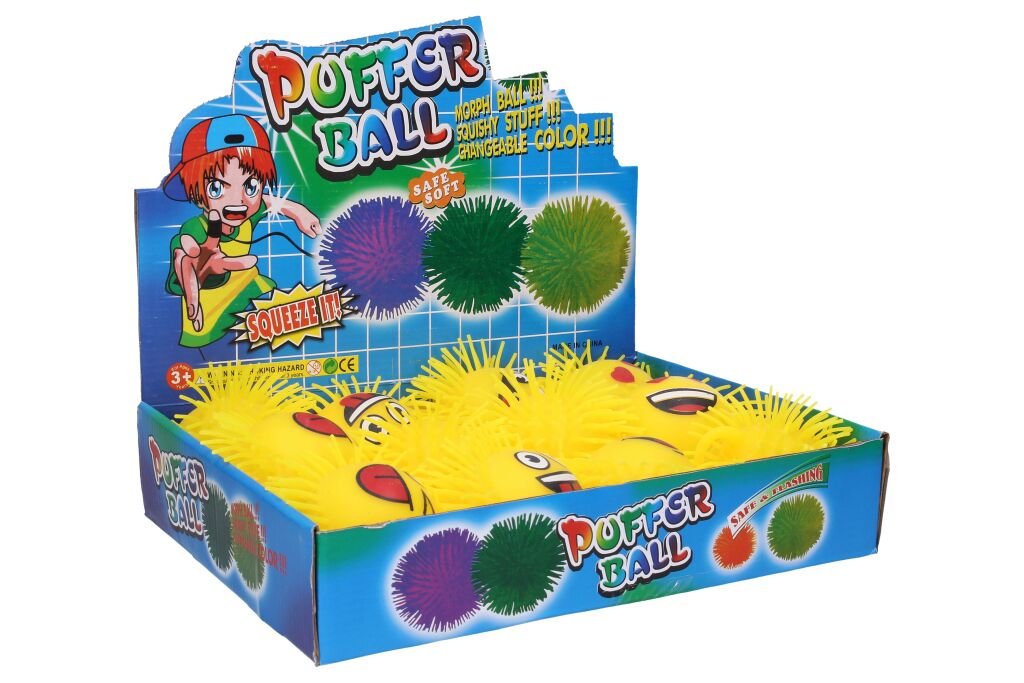 Mačkací míček s třásněmi. Velikost 10 cm. Blikající. Baterie jsou zabudované uvnitř hračky, nelze měnit.Parametry produktu