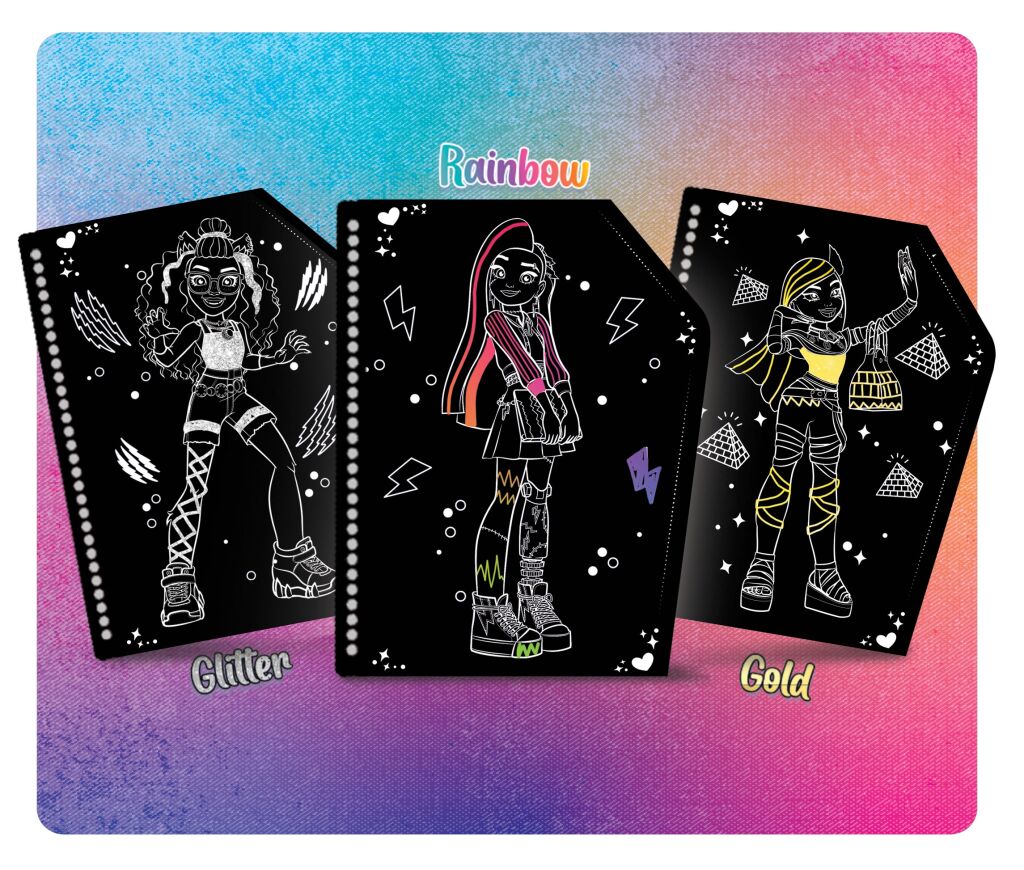 Monster High Vyškrabávací omalovánky objetí. Obsahuje omalovánky a škrabací pero.Parametry produktu