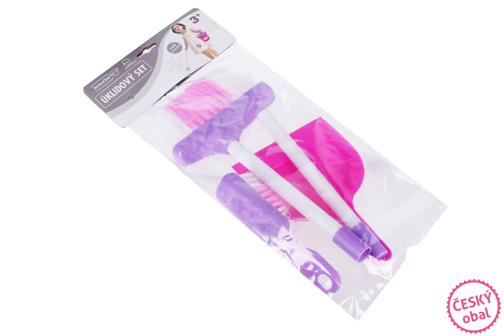 Plastová dětská sada na úklid. Obsahuje lopatku, smetáček a smeták.