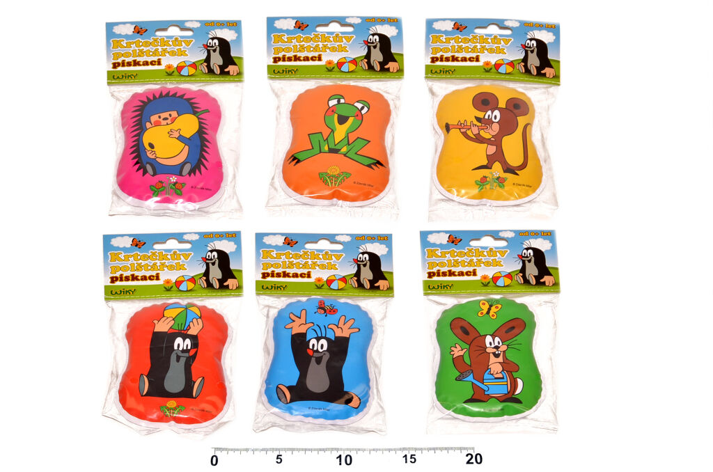 Pískací polštářek z bezpečného materiálu pro nejmenší s motivem oblíbeného Krtečka a jeho kamarádů. Polštářek děti zaujme svou barevností a ...