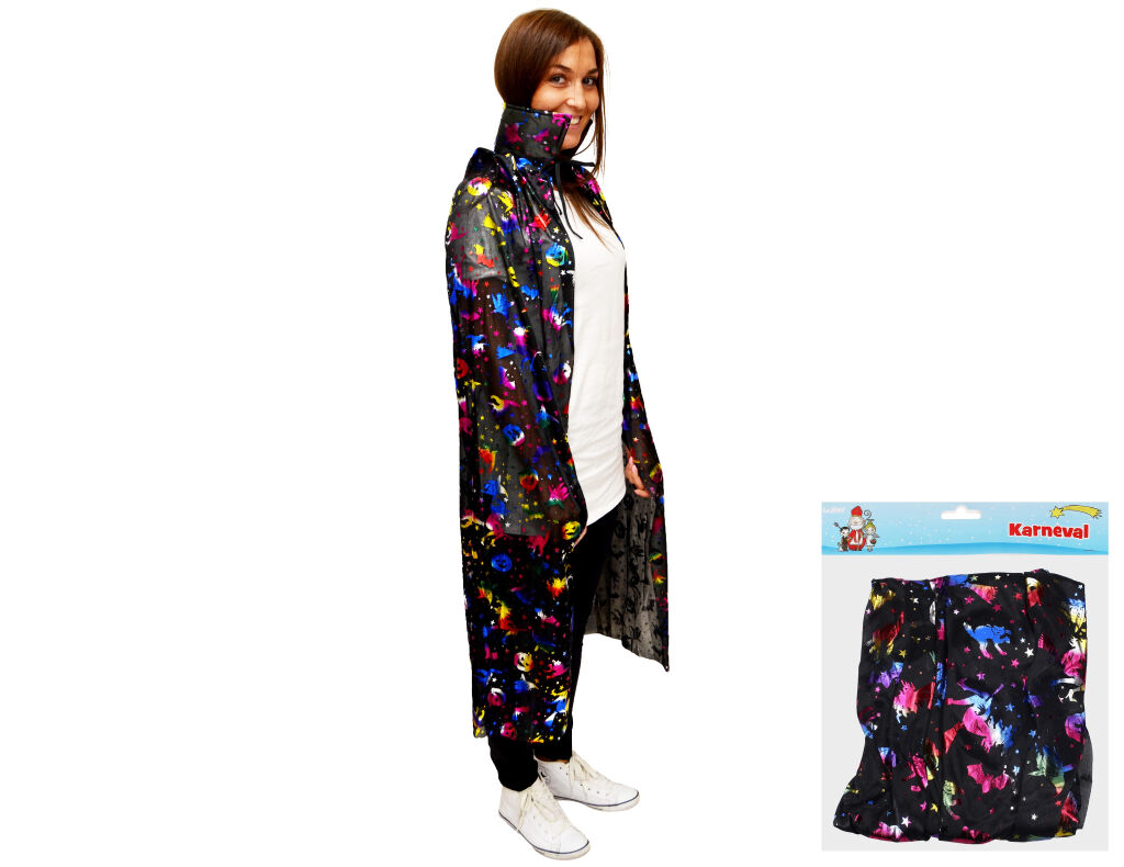 Plášť ideální pro malou čarodějku nebo čaroděje. Je vyroben z lesklého materiálu s potiskem barevných dýní. Plášť má límec a vázání na šňůrku u krku. Délka pláště: 120cmParametry produktu