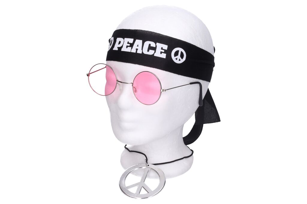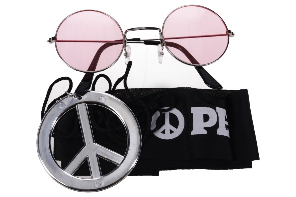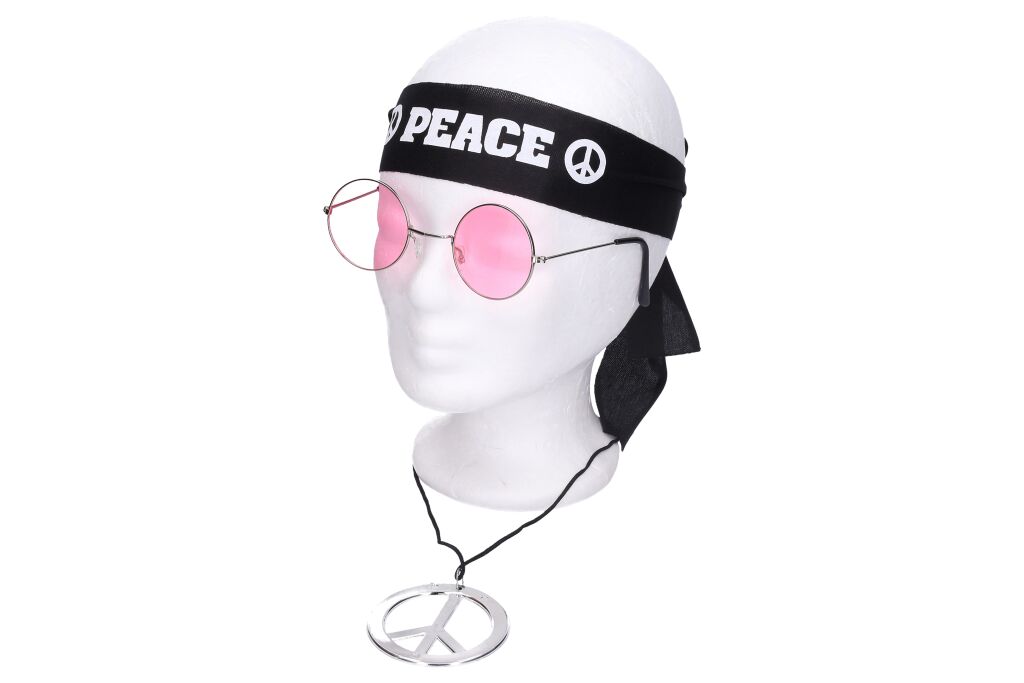 Karnevalový set - hippies. Obsahuje: brýle, šátek, přívěšek