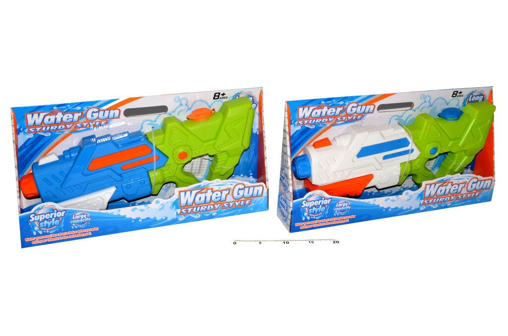 Vodní pistole s nádržkou. Velikost 44 cm. Pumpovací. 2 varianty - modrá, bílá.Parametry produktu