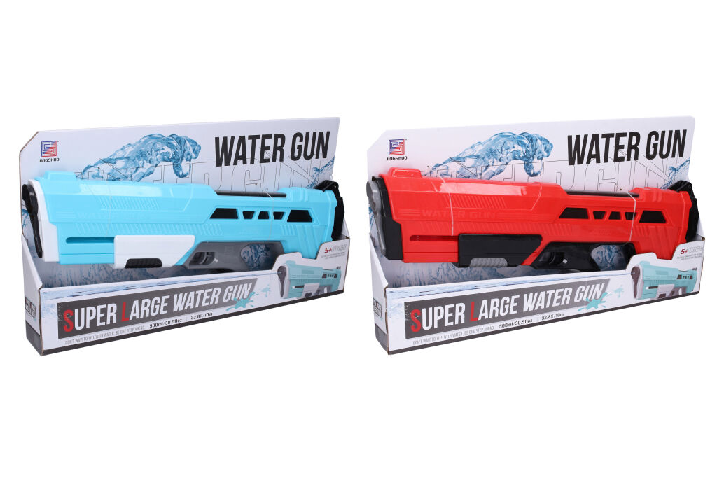Vodní puška. Délka 52 cm. Střelba pumpováním. 2 varianty - modrá, červená.Parametry produktu